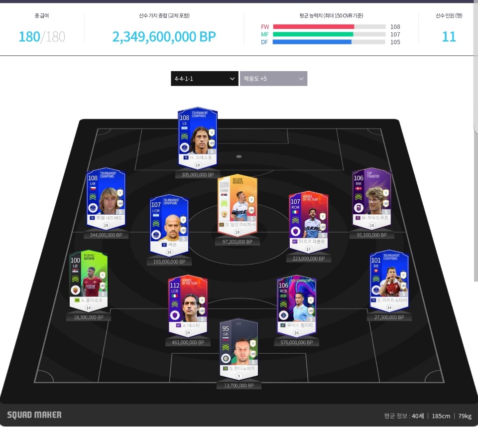 생각보다 공격/수비/중앙/윙어/윙백 모든 조합이 밸런스가 좋으면서 동시에 가격도 준수합니다.